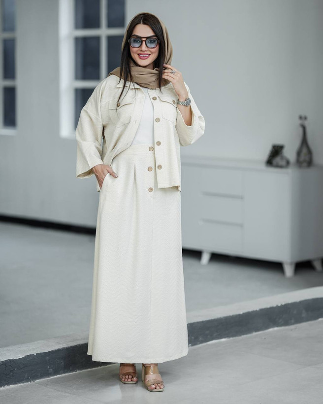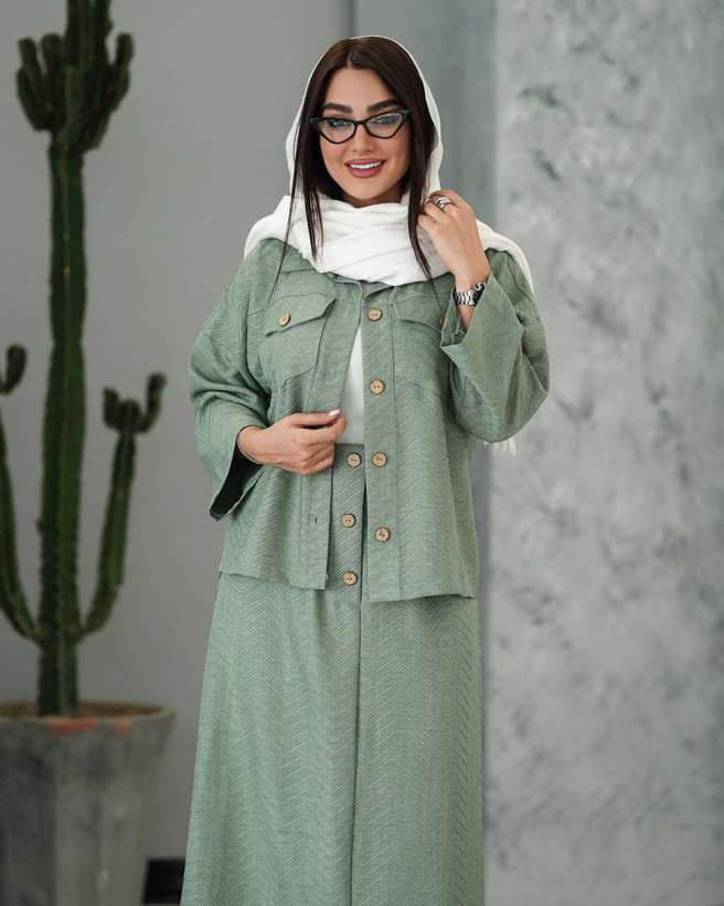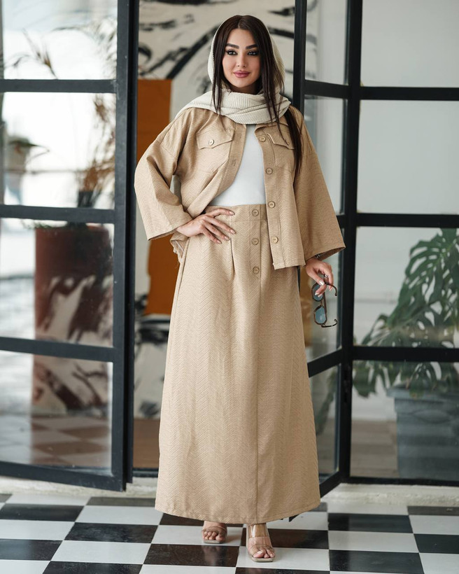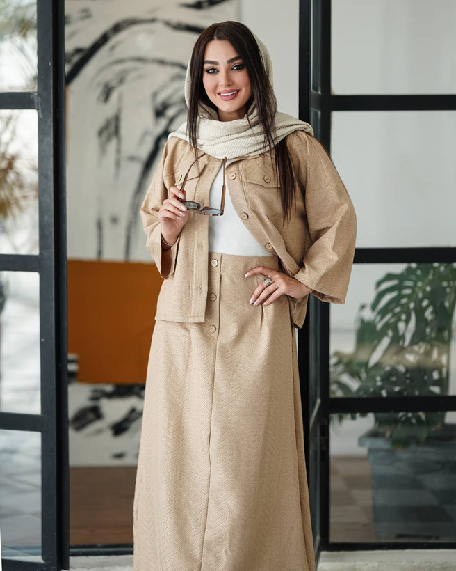 🧥مدل :ست کت دامن دوجیب ، دکمه چوبی