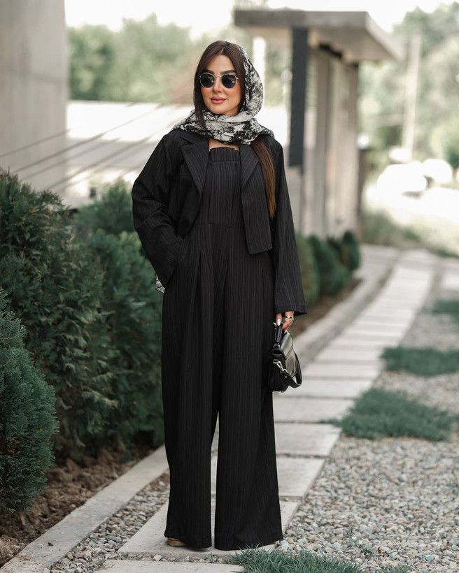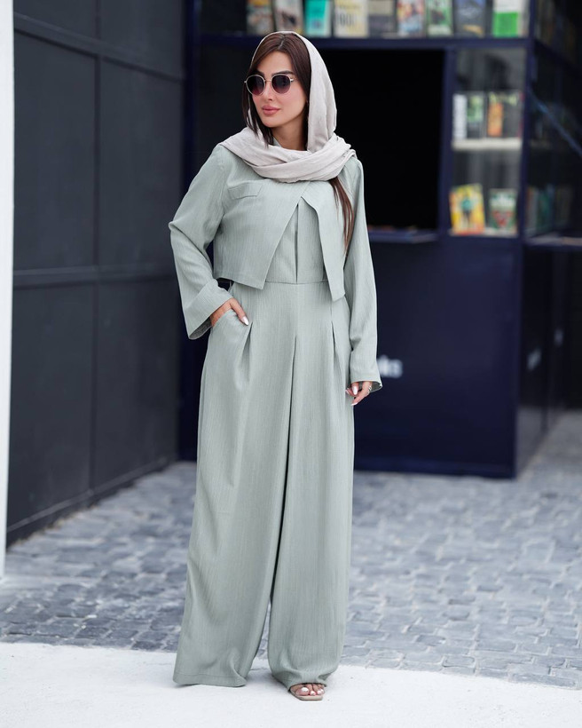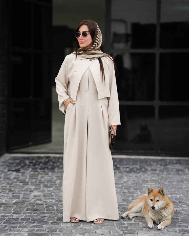 🧥مدل :ست دوتیکه پشت کش،کت کوتاه با اوورال بلند