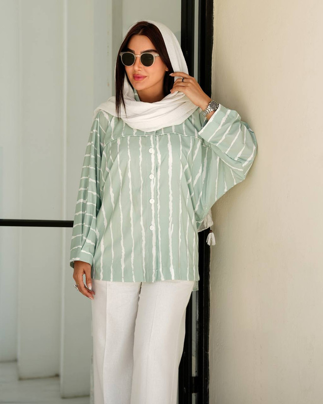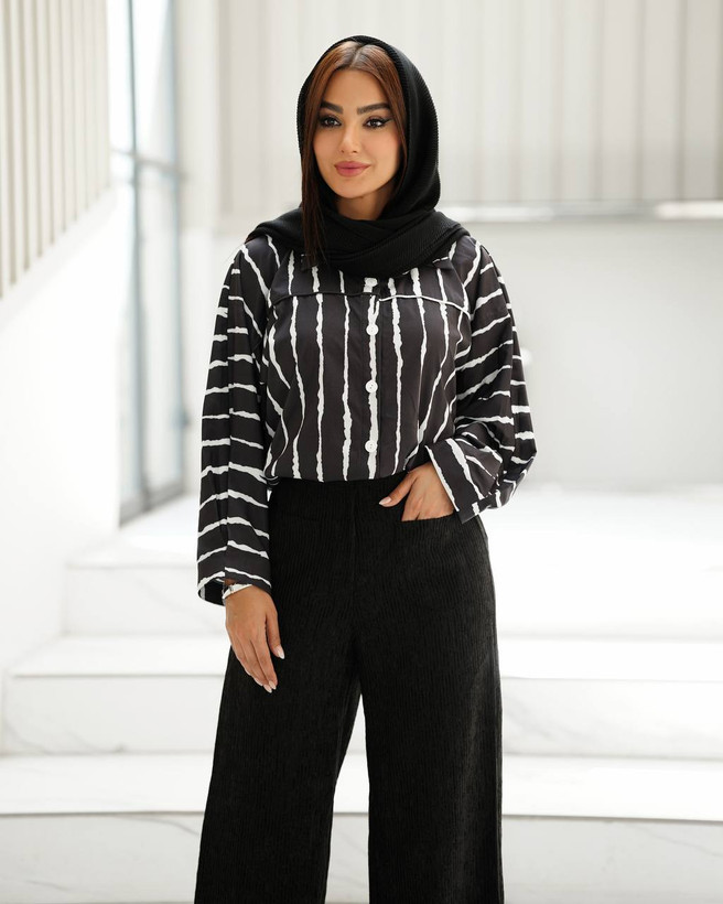 🧵جنس پارچه :پری با پرینت طرح راه راه