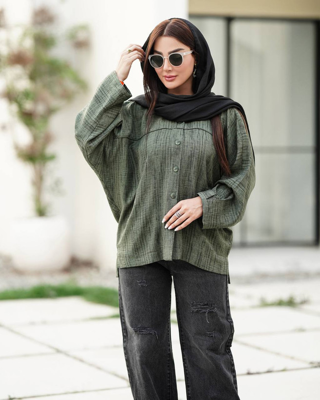 🧥مدل : شومیز مانتویی آستین رگلان ، یقه انگلیسی
