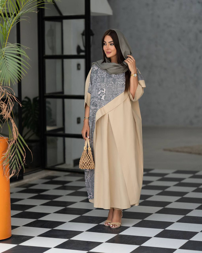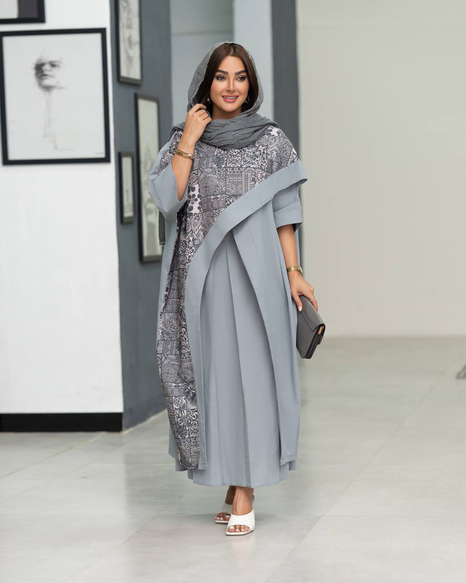 مانتو عبایی بلند طرح دار مدل پریناز۲