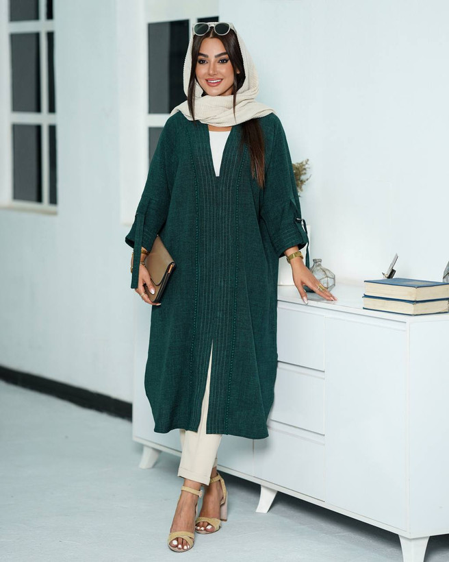 🧥مدل :یقه هفت استین رگلان، دمسه دوزی شده، استین سگک