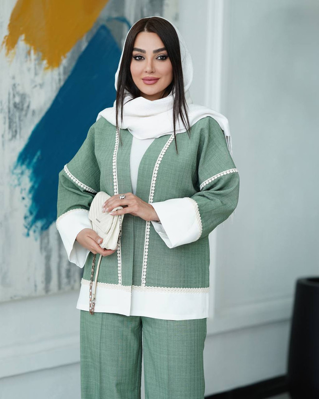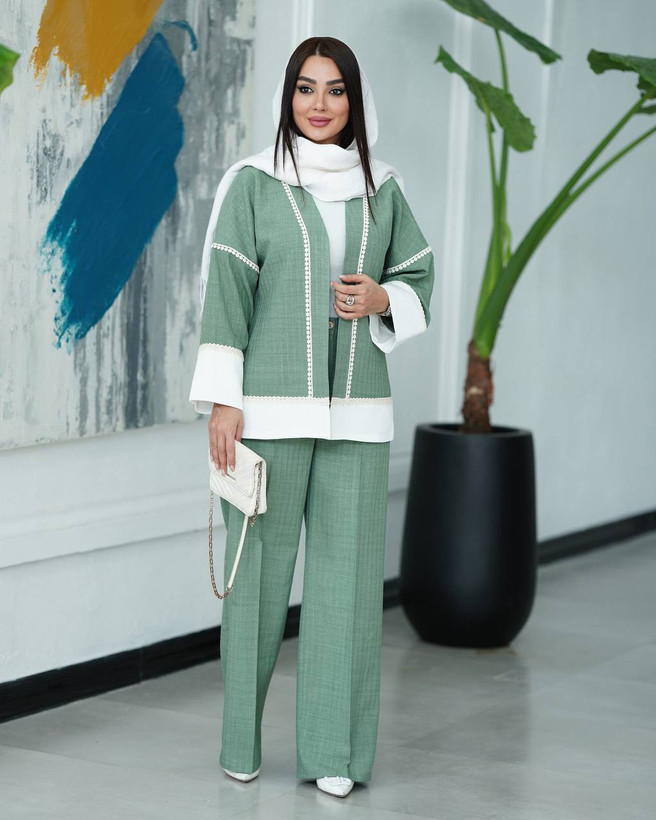 🧥مدل :ست مانتو شلوار ترکیبی با نوار دندون موشی