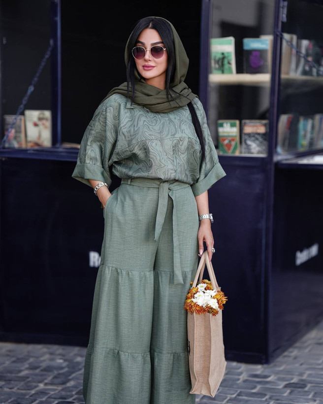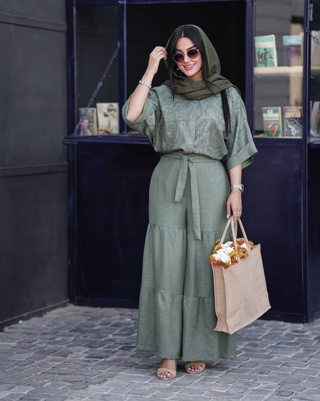 🧥مدل :ست شومیز شلوار ،دوجیب ، استین پاکتی،شلوار طبقه ای