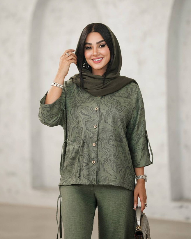 🧥مدل: ست شومیز شلوار، تک جیب، پایین بندی