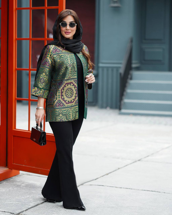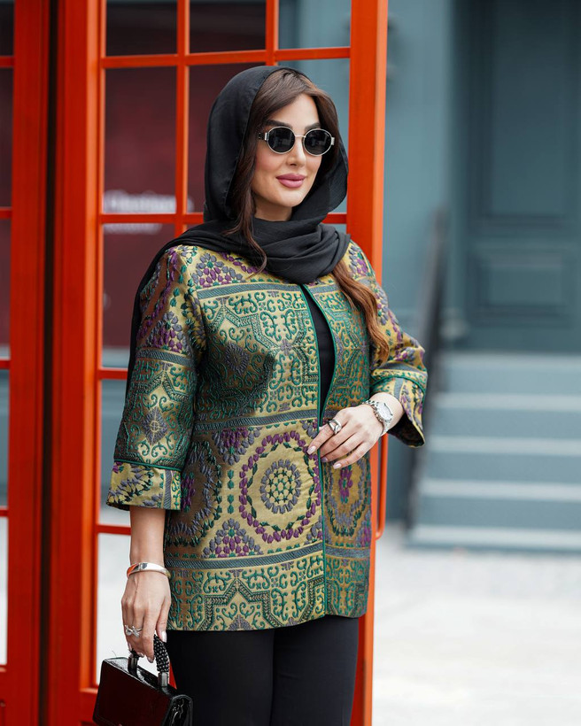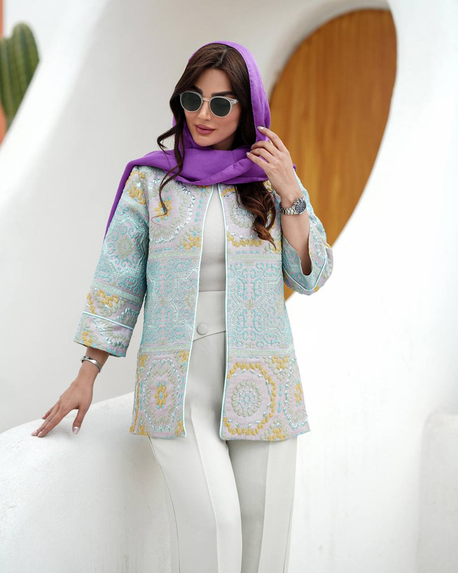 🧵جنس پارچه :ژاکارد ترک با طرح فلوک برجسته