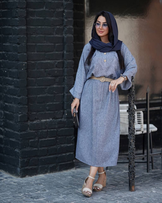 مانتو بلند کمربند دار لینن مدل شمعدونی