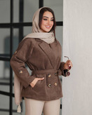 🧥مدل: مانتو یقه انگلیسی استین رگلان، چهاردکمه ،کمردار