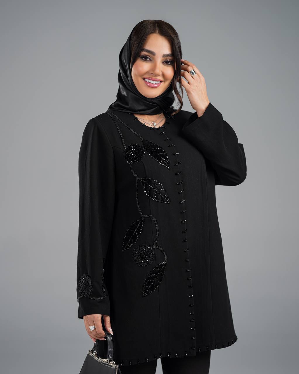 مانتو مجلسی زنانه یقه گرد جواهردوزی مدل گلاره